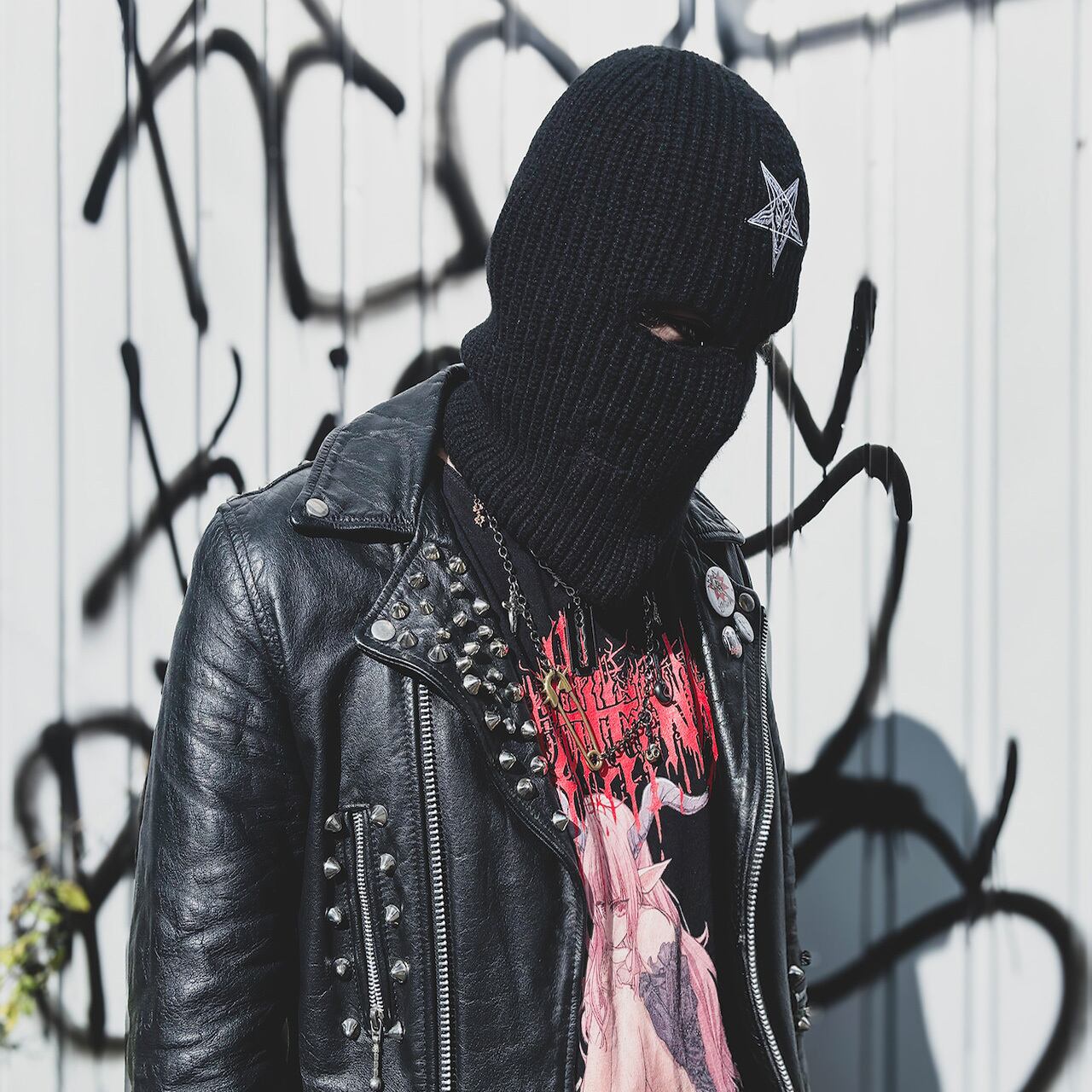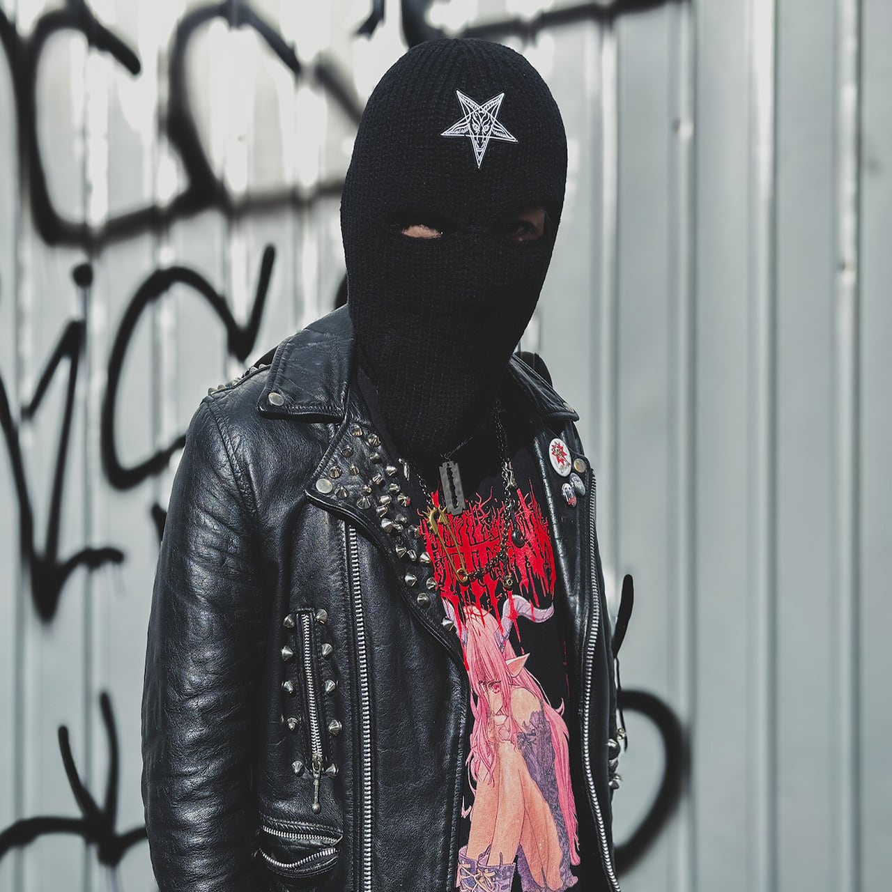額部分にはバフォメットペンタグラムの刺繍。