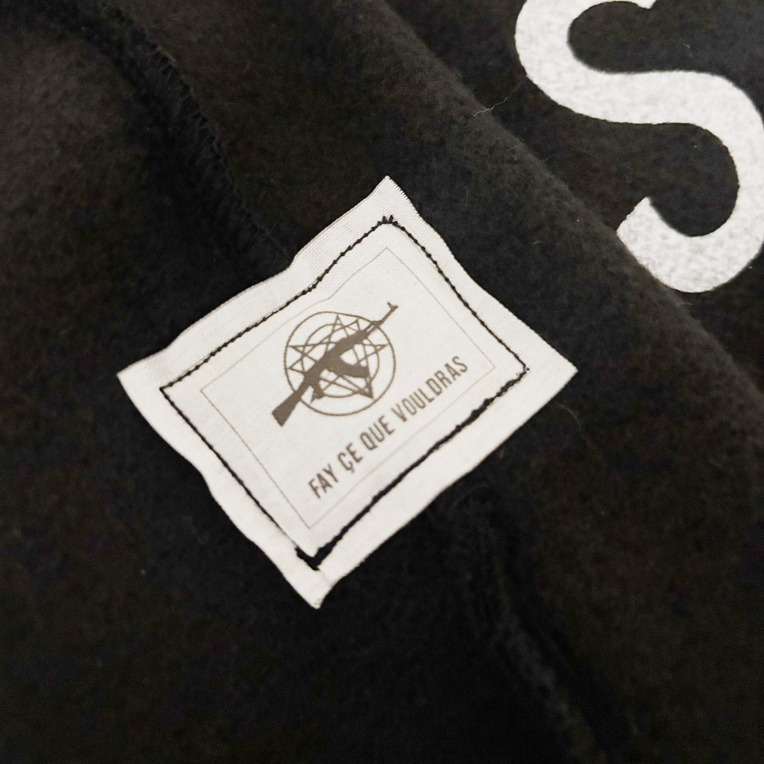 タグには、AK47と合わせたCULTNIAロゴと、 アレイスター・クロウリーの言葉「FAY CE QUE VOUDRAS(汝のなすべきことをなせ)」との組み合わせた。